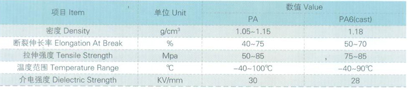 特點是韌性,抗震,有較高的機械強度和耐熱性,抗沖強度較好,熔點較高,成型加工性能好,吸水性大,飽和吸水率在11%左右,易熔于硫酸酚類或甲酸中,低溫脆化溫度為零下20度-30度。